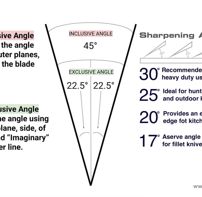 For example: A common kitchen knife sharpened at 20° per side has a 40° inclusive angle.